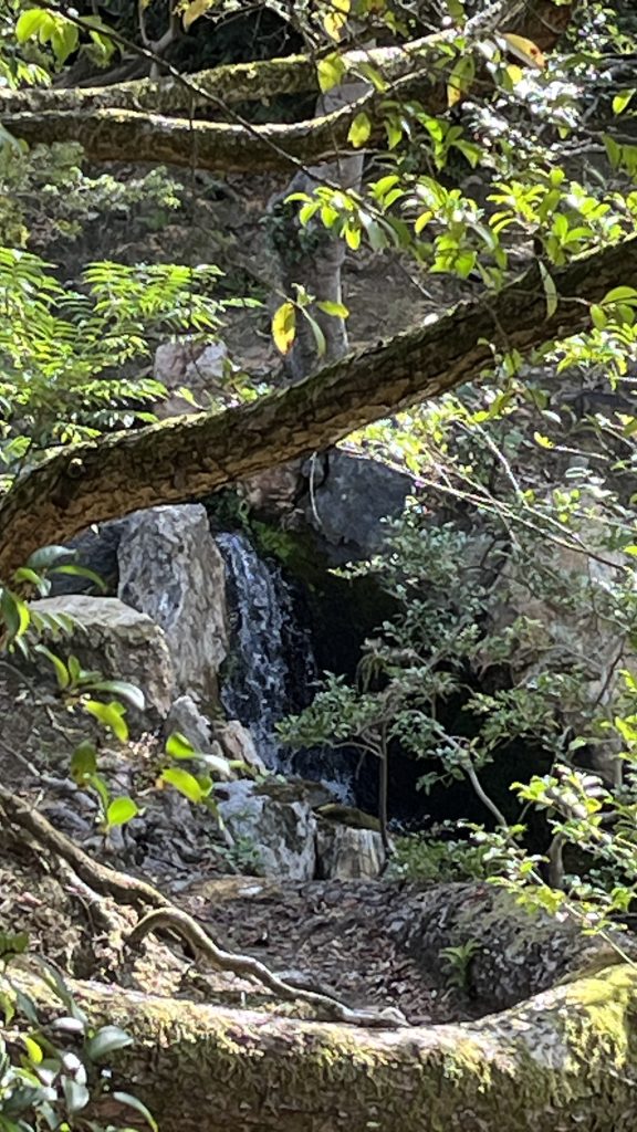 明智門をくぐり、左へ進むと、小さな滝があります。