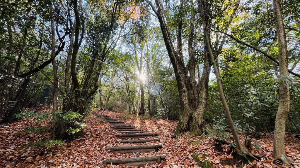 山というよりは、丘でしかないのですが、一歩足を踏み入れると、そこはまさしく「山」です。木々が生い茂り、視界はすべて自然物に一瞬にして変わります。